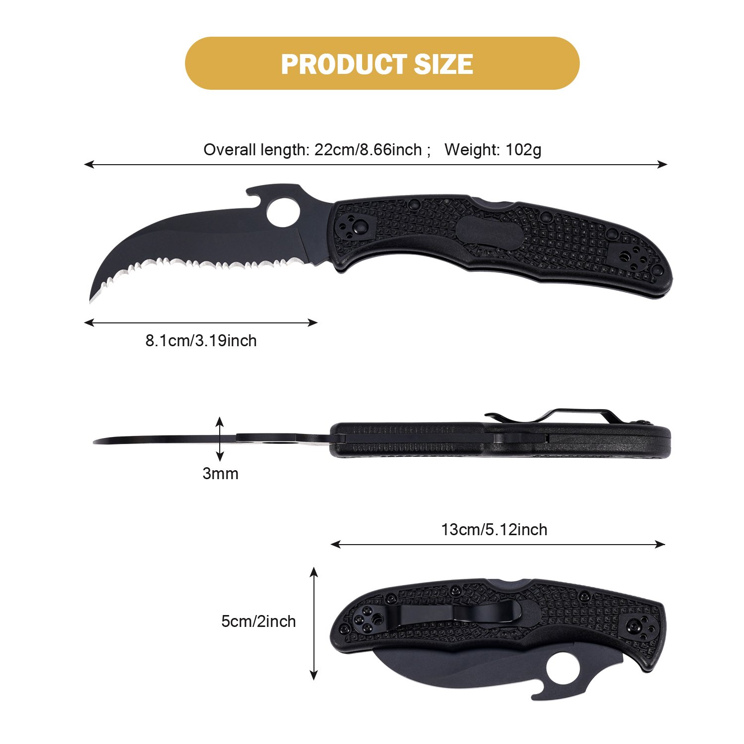 Overall Knife Length: 22.2cm