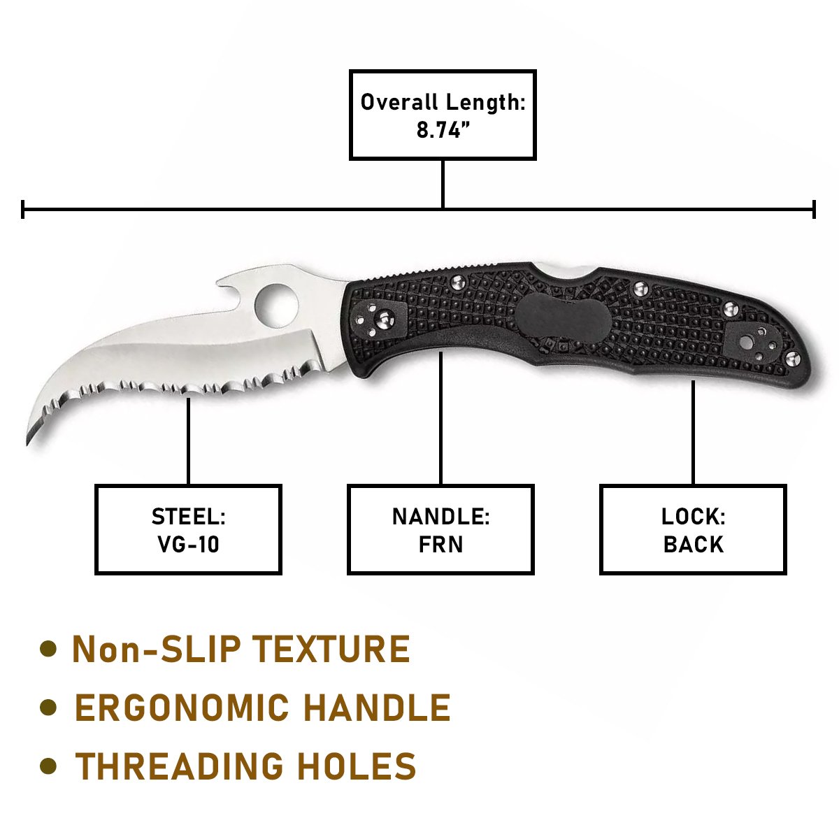 Overall Knife Length: 22.2cm